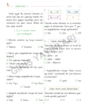 1. Metinde anlatılan ay hangi mevsimin 6. “taşlıdır, Adana’nın, yolları, çok”