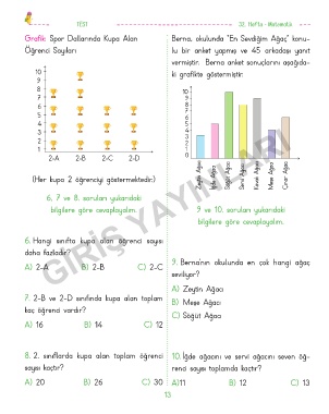 8. 2. sınıflarda kupa alan toplam öğrenci 10. İğde ağacını ve servi ağacını seven öğ-