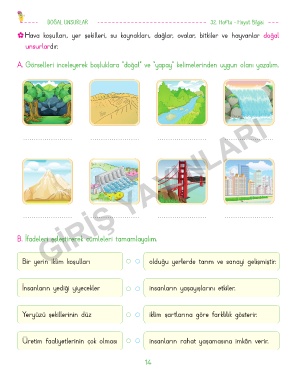A. Görselleri inceleyerek boşluklara “doğal” ve “yapay” kelimelerinden uygun olanı yazalım.