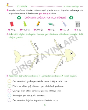 A. Yukarıdaki bilgileri inceleyelim. Evimizde geri dönüşüme atılabilecek maddeleri balık