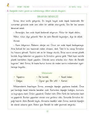 A. Aşağıdaki metni yazım ve noktalamaya dikkat ederek okuyalım.