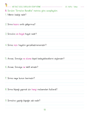 B. Soruları "Sırma’nın Beneklisi” metnine göre cevaplayalım.