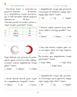 ÇOKLU DEĞERLENDİRME 33. Hafta - Hayat Bilgisi