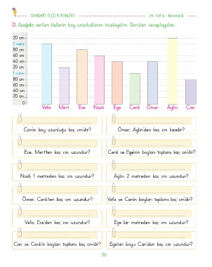 D. Aşağıda verilen kişilerin boy uzunluklarını inceleyelim. Soruları cevaplayalım.