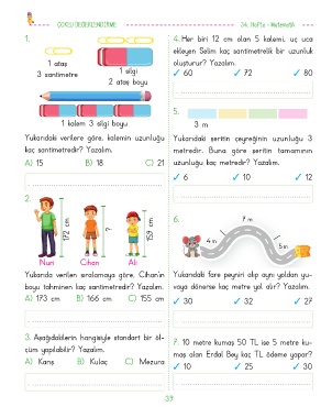 1. 4. Her biri 12 cm olan 5 kalemi, uç uca