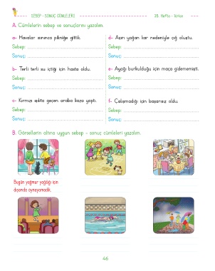 B. Görsellerin altına uygun sebep - sonuç cümleleri yazalım.