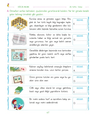 A. Görselleri verilen kelimeleri, ipuçlarından yararlanarak bulalım. Her bir görsele karşılık