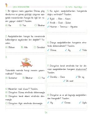 4. Mevsimler nasıl oluşur? Yazalım.