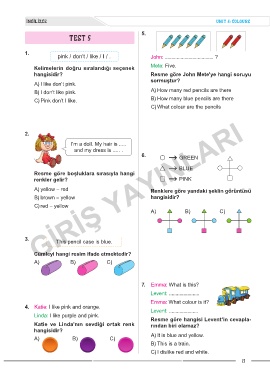 Linda: I like purple and pink. Resme göre hangisi Levent'in cevapla-
