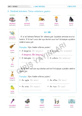 A. Sözlükteki kelimelerin Türkçe anlamlarını yazalım.
