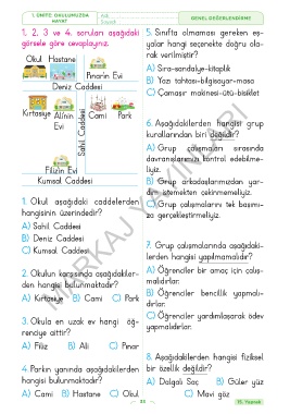 1. Okul aşağıdaki caddelerden C) Grup çalışmalarını tek başımı-