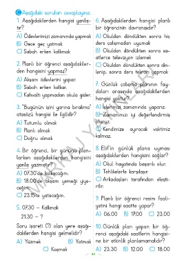 C) Sabah erken kalkmak B) Okuldan döndükten sonra sa-