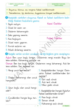 A Aşağıdaki cümleleri okuyunuz. Kişisel ve fiziksel özelliklerin belir-