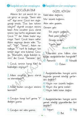 5. Çocuğun asıl adını yazınız. A) Yoğurt B) Yağ