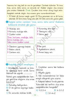 C Aşağıda verilen cümleleri “önce, sonra, daha sonra” ifadelerini
