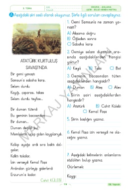 A Aşağıdaki şiiri sesli olarak okuyunuz. Şiirle ilgili soruları cevaplayınız.