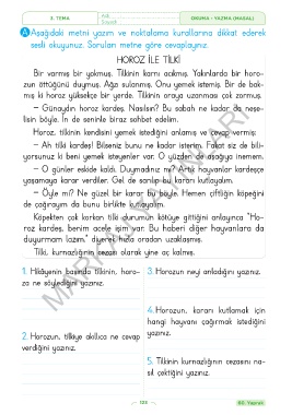 1. Hikâyenin başında tilkinin, horo- 3. Horozun neyi anladığını yazınız.