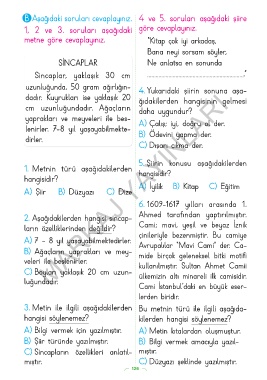 B Aşağıdaki soruları cevaplayınız. 4 ve 5. soruları aşağıdaki şiire
