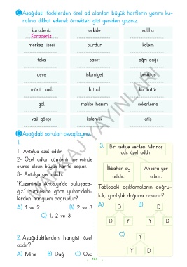 C Aşağıdaki ifadelerden özel ad olanları büyük harflerin yazımı ku-