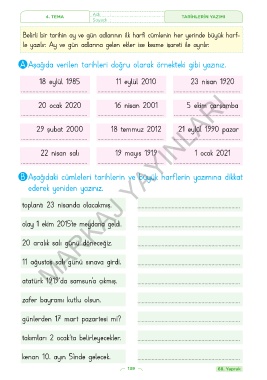 B Aşağıdaki cümleleri tarihlerin ve büyük harflerin yazımına dikkat