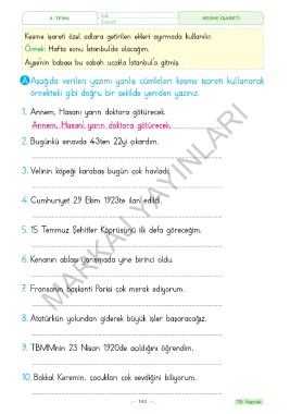 A Aşağıda verilen yazımı yanlış cümleleri kesme işareti kullanarak