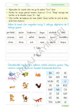 • Harfler bir araya gelerek heceleri oluşturur. Örnek: “Kitap” sözcüğü beş