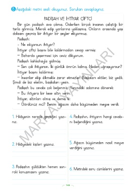 3. Padişahın güldükten hemen son- 6. Metindeki soru cümlelerini yazınız.