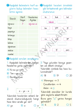 C Aşağıdaki kelimelerin harf sa- D Aşağıdaki heceleri örnekteki