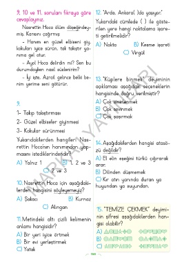 9, 10 ve 11. soruları fıkraya göre 12. “Arda, Ankara( )da yaşıyor.”