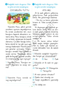 1. Nasrettin Hoca, “Kavuğun ne- 2. Masalda at ile eşek ne yapı-