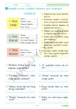 A Aşağıdaki soruları, içindekiler bölümüne göre cevaplayınız.