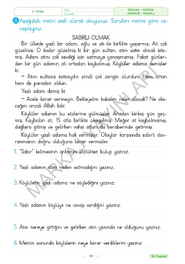 A Aşağıdaki metni sesli olarak okuyunuz. Soruları metne göre ce-