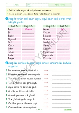 A Aşağıda verilen tekil adları çoğul, çoğul adları tekil olarak örnek-