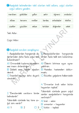C Aşağıdaki kelimelerden tekil olanları tekil adlara, çoğul olanları
