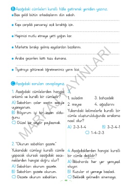 B Aşağıdaki cümleleri kurallı hâle getirerek yeniden yazınız.