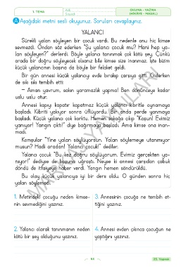 2. Yalancı olarak tanınmanın neden 4. Annesi evden çıkınca çocuğun ne