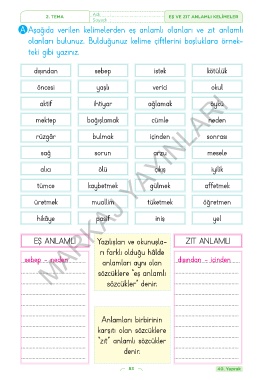 2. TEMA Adı : EŞ VE ZIT ANLAMLI KELİMELER