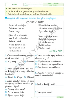 1. Çocuk aşağıdakilerden hangisi- 4. Şiirin sonunda ağaç, nelerinin