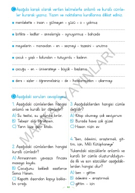 C Aşağıda karışık olarak verilen kelimelerle anlamlı ve kurallı cümle-