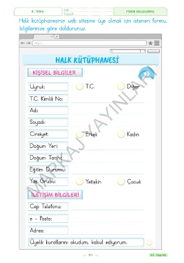 8. TEMA Adı : FORM DOLDURMA