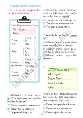1, 2 ve 3. soruları aşağıdaki for- 2. Müşterinin “ürünün temizlen-
