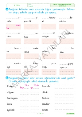 A Aşağıdaki kelimeler satır sonunda doğru ayrılmamıştır. Kelime-