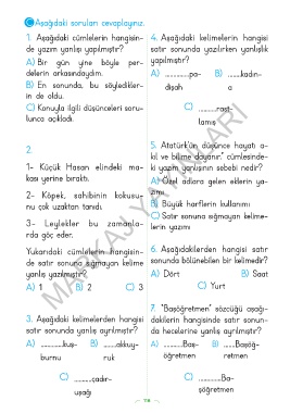 3. Aşağıdaki kelimelerden hangisi dakilerin hangisinde satır sonun-