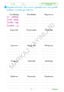 A Aşağıdaki kelimelerin satır sonuna sığmadıklarında nasıl yazılabi-