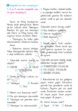1, 2 ve 3. soruları aşağıdaki met- 4. Palyaço balıkları, kelebek balıkla-