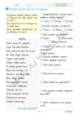 şiir denir. A) Cesur B) Tembel C) Kurnaz