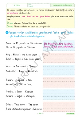 8. TEMA Adı : KARŞILAŞTIRMA CÜMLELERİ