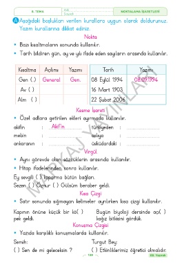 8. TEMA Adı : NOKTALAMA İŞARETLERİ