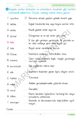 5. TEMA Adı : KELİMELERİN SÖZLÜK ANLAMI