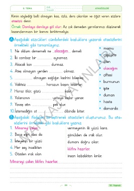 A Aşağıdaki sözcükleri cümlelerdeki boşluklara yazarak atasözlerini